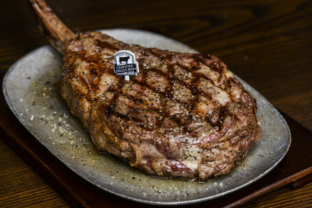 Taste Of Texas Tomahawk Taste Of Texas Tomahawk : Each tomahawk ribeye steak is an impressive 38 ounces with a 14 inch bone that will hang off your plate.
